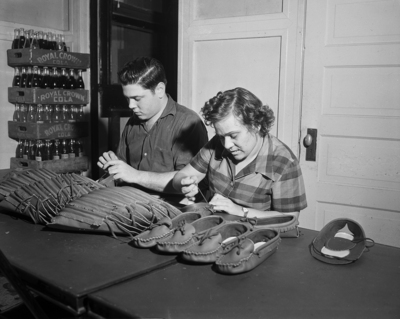 Although they can not see the results of their labor, Arnold Horton and Mrs. Elizabeth Boone, are part of the working force at the Lighthouse for the Blind. The sightless receive as pay the net profits from the articles they produce.