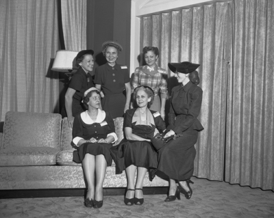 Standing left to right, Fay Maberry, Lucia Wade, Babe Cooper. Seated, Margaret Hill, Grace O' Connor, Dorothy Kassel.