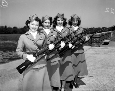 Polytechnic High School's ROTC sponsors and rifle team are left to right, Dickie Meek, Doris Meharg, Billie Rudd and Mary Anne Wade. They were one of the teams competing in a shoot held at the Organized Reserve Corps armory.