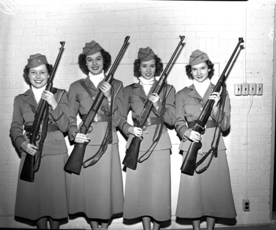 Paschal High School pretties who participated in an ROTC sponsors rifle match are left to right, June Clark, Darlene Welch, Phyllis Cawley and Sue Ogletree. The Fort Worth ROTC unit's third annual shoot was held at the Organized Reserve Corp's armory.