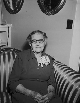Seated in a couch, facing front is Mrs. C. T. Huggins.