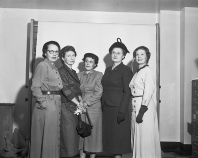 Standing from left to right, Mmes. A. Blan Bell, S. Gardner Endress, D. W. Robinson, P. M. Geren and C. J. Harkrider.