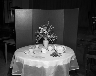 A real "pink tea" table is one of 12 special occasion tables Mrs. Alfred McKnight, 2212 Pembroke Drive will arrange for the Waco Garden Club in the ballroom of Waco's Roosevelt Hotel Tuesday.