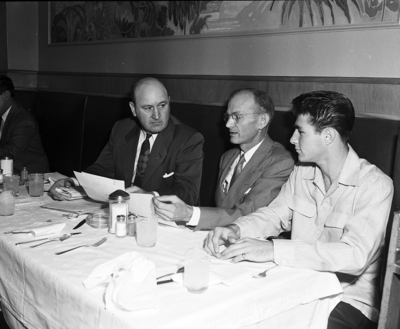 A homecoming program for TCU exes the weekend of Nov. 1 was completed by, left to right, Judge Jack Langdon, president of the Ex-Students' Association; Noel Keith assistant to President Sadler, and Ren Kent, student president.