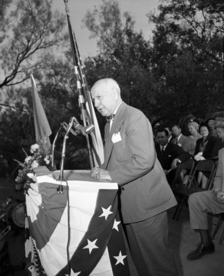 Amon Carter speaks to crowd at groundbreaking ceremonies for the new Fort Worth Children's Museum, Montgomery and Crestline Rd., 10/24/1952