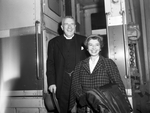 Reverend S. M. Shoemaker, Pittsburg Episcopal rector, and his wife arrived here for a citywide preaching mission. Dr. Shoemaker defines a preaching mission as "Episcopalian for a revival." They are shown alighting from the train.