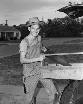 Earl Dean Thompson, 23, of 111 Adrian Dr., entered the office of Scott J. McGinnis, field representative of the Bureau of Apprenticeship, where he signed on the dotted line to become an apprentice for four years. Published in Fort Worth Star-Telegram evening edition April 9, 1950.