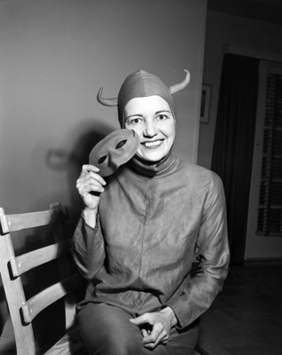 Mrs. Homer Belew went out spooking on Halloween night wearing for the 30th year the same devil's costume her mother made for her when she was a girl.