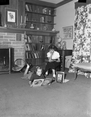 Sara, 8, left, and Judy, 12, daughters of Reverend and Mrs. Granville T. Walker, enjoy frequent quiet hours of reading in their days of study and play. They are shown reading books.