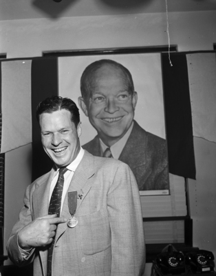 Campaign Hero of 1952' - Ben Guill, state campaign manager for General Eisenhower, proudly displays a medal presented him Tuesday by fellow-workers. The medal proclaims Guill "Campaign Hero 0f 1952".