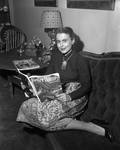 Mrs. James O. Chambers, curled up on a Victorian sofa in her home at 3715 Lenox, planning a new home. She has a 12-acre siter which she will share with other home builders. Published in Fort Worth Star-Telegram morning edition April 16, 1950.
