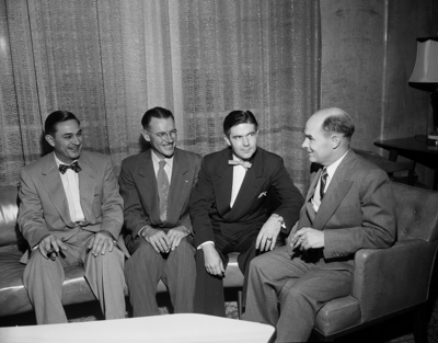 Chiropractor Leaders - Dr. J. C. Shipman of Abilene, second from right, president of the Texas State Chiropractic Association, confers with three district presidents during a meeting here Sunday. They are Dr. Evans Lovelace of Sherman, left, District 5; Dr. A. E. Gambriell of Fort Worth, District 4 and Dr. A. F. Veau of Marshall, right, District 6.
