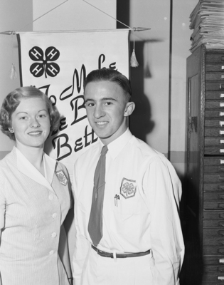 Ranch and Farm cover picture of Alma Dean and Bobby Nichols. Alma and Bobby are standing in front of a 4-H banner.