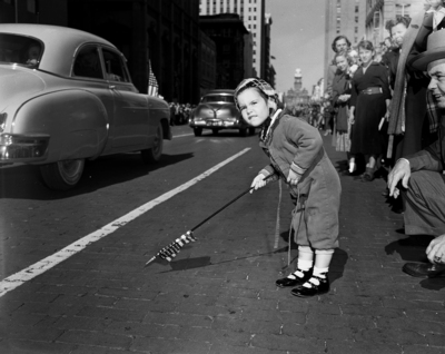 Armistice Day Observance Here - Anita Louise Malone, 3, daughter of Mr. and Mrs. A. M. Malone, 313 Colonial, waves her flag as she waits for the downtown parade to pass by.