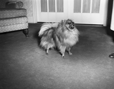 Little Boots of Hillworth, owned by Mrs. Clyde Hill, of 1904 Benhall Court, was one of the 575 entries in the Fort Worth Kennel Club's all-breed dog show. Boots is a Pomeranian.