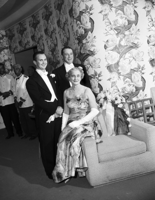 Happy to have two debutantes in the family, are, left to right, William J. Bond, whose niece, Miss Virginia Furman is one of the season's debutantes; her father, Dr. Jack Furman, and her grandmother, Mrs. John J. Bond. The second debutante in the family is Mrs. Furman, who made her debut the first year the Steeplechase presented debutantes. She was Miss Virginia Bond.