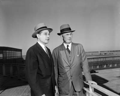 Bankers See Airport - S. Sloan Colt, right, president of the Bankers Trust Company of New York and a commissioner of the Port of New York Authority, looks over Greater Fort Worth International Airport Friday with Edmund F. Ebert, Bankers Trust Company vice president.