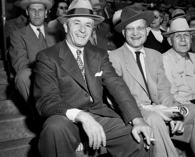 Ex-Frogs - Blair Cherry, left, and Wild Bill Honey, football teammates at Texas Christian University (TCU) in the early 1920s, watch Saturday 's Texas-TCU game. Cherry was Texas coach in 1950 when Longhorns won SWC title.