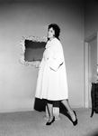 High Fashion in Fur  Newest fall silhouettes, dramatic but wearable, are translated here into fur. A smart sport coat of white sheared Canadian beaver features the empire-belted trapeze line. A Robert Koslow design.