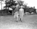 Mrs. J. L. Stephenson (left) and Polly Riley are walking for their match for the Fort Worth Women's Golf Championship at River Crest. Miss Riley retained, 10-9. Published in Fort Worth Star-Telegram morning edition April 9, 1950.
