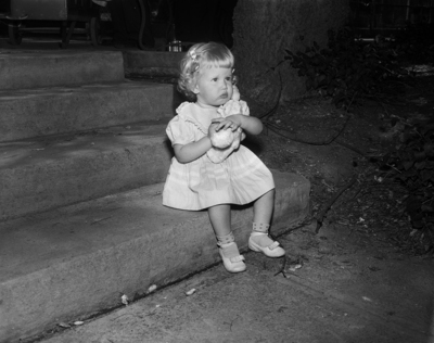 Image shows Sharon Wilson, 1, 641 Herbert Drive in her Easter frills at Forest Park. Published in Fort Worth Star-Telegram morning edition April 10, 1950.