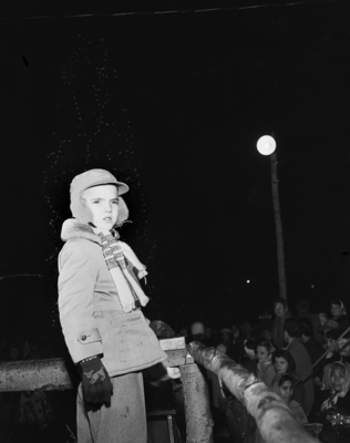 A crowd was gathered at Burnett Park as lights on the Star-Telegram's 1952 Christmas tree flashed on for the first time Tuesday night as Kevin North, 6-year-old son of Mr. and Mrs. Phil R. North, flicked the switch.