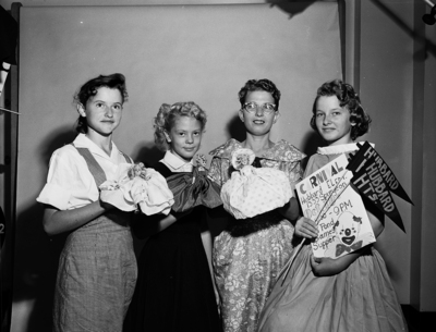 The Hubbard Heights PTA carnival will be held from 5:30 p.m. Friday at the school. Preparing for the event are left to right, Barbra Capps, daughter of Mr. and Mrs. W. M. Capps of 4904 Gordon Ave., Martha Ann Paulson, daughter of Mr. and Mrs. Alvin Paulson of 1704 Spurgeon and Mrs. James A. Noah and daughter, Sandra Noah, of 1105 W. Felix.