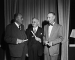 Mid Continent Oil and Gas Association. Distinguished service awards went to three members of the committee who have retired from their companies. Left to right, S. M. Greenidge, J. G. Mart ll, W. N. Fligtmaster of Beeville