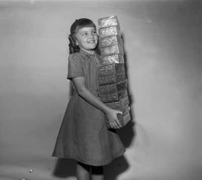Deanna Olson sells Girl Scout cookies; she's 8 years old and a Brownie at Circle Park Elementary School, Fort Worth, Texas.