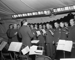 Airman First Class Sam G. Houston directs glee club of 585th Air Force Band in carol singing at Star-Telegram Yule tree festival Sunday night in Burk Burnett Memorial Park. The musical group from Carswell Air Force Base provided an hour's concert.