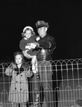 The Star-Telegram Christmas Tree fascinated Laurie Magill, 2, and her "big" brother Bobby, 5, and then they joined Motor Officer C. H. Redmond for a look at flowers blooming in Burk Burnett Memorial Park. The youngsters' parents are Dr. and Mrs. J. E. Magill.