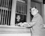 Houston P. Hutchens Tuesday gave the Star-Telegram Goodfellow Fund a big boost when he turned in $1,014.50 from the Stock Yards R. B. Mayo Memorial Fund. Miss Lucy Knittel, Star-Telegram cashier, accepted the 1952 gift on behalf of the Goodfellows.