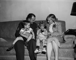 Nancy Horch, 6, her mother and father and brother Thomas, enjoy free call to relatives in Los Angeles at the expense of phone company.