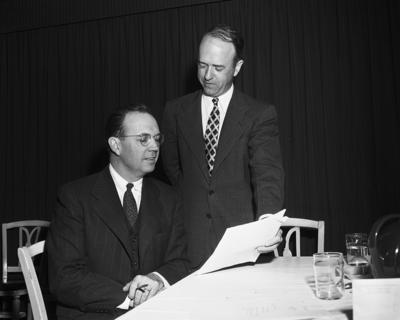 John W. Joyce, left, new executive director of the Family Service Association of Fort Worth, meets with Dr. C. S. Clifton, president of the board, during his first formal session with directors since assuming the job.