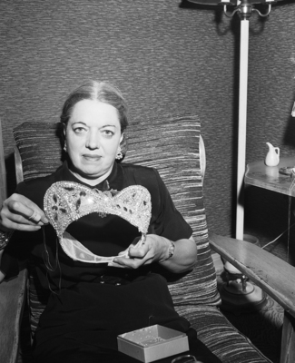 Mrs. John J. Bannon Jr., holding crown she made for the queen of the Mardi Gras.
