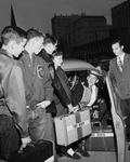 Delegates to the annual Hi-Youth in Government left for Austin to take over state offices for three days. Left to right are Don Lemons, Charles Quick, Robert Hodshire, Dondena Gossett, Lanny Searcy, and Walter S. Parr, Riverside Branch executive.