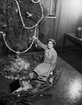 Public Library. Miss Jaque Loman shown with library's Texas Christmas tree.
