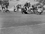 Billy Dendy of Breckenridge goes for four yards against Temple before being hauled down by Bobby Farell (34) in second period at Waco. Other temple players are Jerry Cornelison (72), Harold Barnett (60), and Gene Meyer (74). The Bucks fought back from an early deficit to win 3A title, 28-20. Published in Fort Worth Star-Telegram morning edition December 14, 1952.