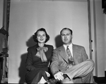 Ruth Carter Johnson and her brother Amon Carter Junior are seated next to one another. Ruth is wearing a dress with a bow tied around her neck. Amon Junior is wearing a sport coat and slacks.