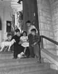 Msgr. Joseph G. O'Donohoe sits on the steps at St. Patrick's Church and tells a Christmas Eve story of shepherds abiding in the field, keeping watch over their flocks. Listening are, left to right, Jimmy Poplin, 8, son of Mr. and Mrs. Alfred Poplin of 2308 Salisbury; Mary Gandarilla, 5, daughter of Mrs. and Mrs. Ernest Gandarilla of 217 E. Daggett; Benito, 11, and his brother, Victor Fernandez, 6, sons of Mr. and Mrs. Benny Fernandez of 300 Franklin.