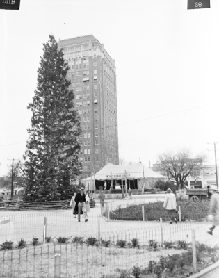 Last vestiges of this Yule setting are being removed from Burk Burnett Memorial Park to mark the close of the third annual Star-Telegram Christmas Tree and Music Festival. At right is tent and stage where music programs were presented.