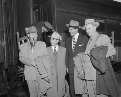 Left to right, J. L. Bradley, Tom Y. Cartwright, Don McSween and W. Lunn McKeel arrive for the game. The Tennesee Voluntees will face the Texas Longhorns.