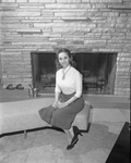 Miss Jo Ann Sarazan, sitting in front of fireplace