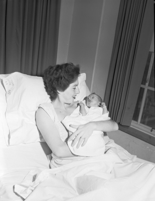 Mrs. J. T. Evans Jr. is holding her infant son, Charles Griffith Evans at St. Joseph's Hospital.