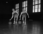 Sophomore I. B. Childs (#3), left, and Junior Woody Woodman (#5), who have been alternating at starting guard spot for Poly, will go against Carter Riverside Thursday night, January 8, as second half for 4A-3 cage race starts. Both boys are dribbling basketballs.