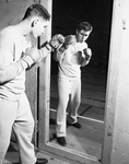 Lester Bruner of Panther Boys Club perfects form for regional Golden Gloves tournament January 15-19 at Will Rogers Memorial Coliseum. A runner-up in the high school middleweight class last year, Bruner will compete for the open light-heavy title. Bruner posed looking into a mirror.