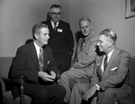 Awaiting the start of Asphalt Institute's dinner Friday night, January 9 at Hilton Hotel are, left to right, E. H. Thornton Jr. of Galveston, chairman of Texas State Highway Commission; C. W. Barbour of Oklahoma City, president of Allied Materials Corporation and a director of the institute; W. W. Finley, Fort Worth district engineer, State Highway Department, and Hugh C. Wallace, the institute's Division IV engineer.