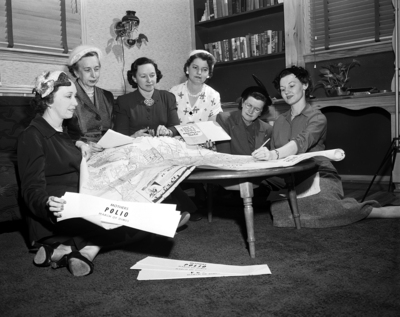 Tkac, Ludwig W. (Mrs.); Ingram, E. Brinton (Mrs.); Harris, Walter (Mrs.); Unruh, A. E. (Mrs.); Mills, A. W. (Mrs.); Christopher, D. R. (Mrs.); March of Dimes Foundation; National Foundation of Infantile Paralysis; Leonard, Florence N., 1917-1977