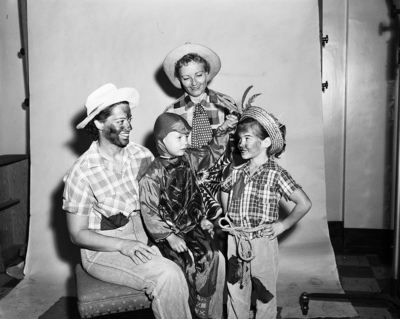 In costume for the annual PTA carnival of North Hurst Elementary School, to be given at 6:00 p.m. ct. 17 on the school grounds, are, left to right, Mrs. T. H. Weatherly, Gordon Gibbons, Mrs. C. K. Gibbons and Shirley Weatherly, all of Hurst.