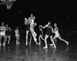 TCU's Charles White (#24) finds himself tangled up with Texas A&M's James Addison (#78) on attempted shot Tuesday night, January 13 at Will Rogers Coliseum. Frogs won, 67-36.